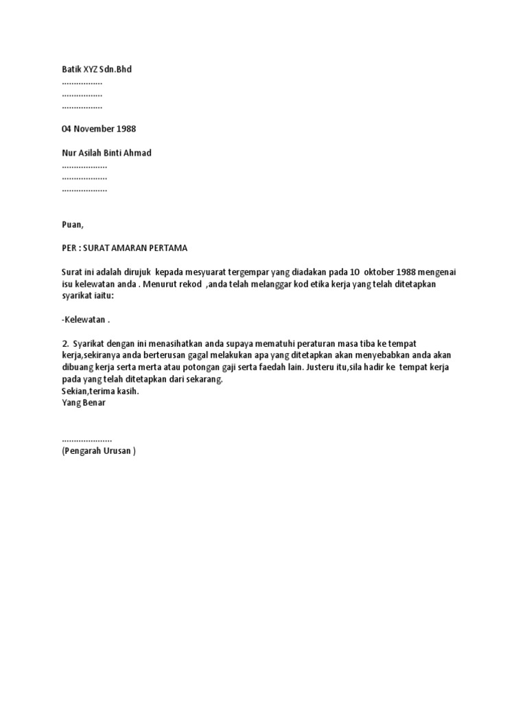Contoh Surat Amaran Untuk Pekerja Pdf